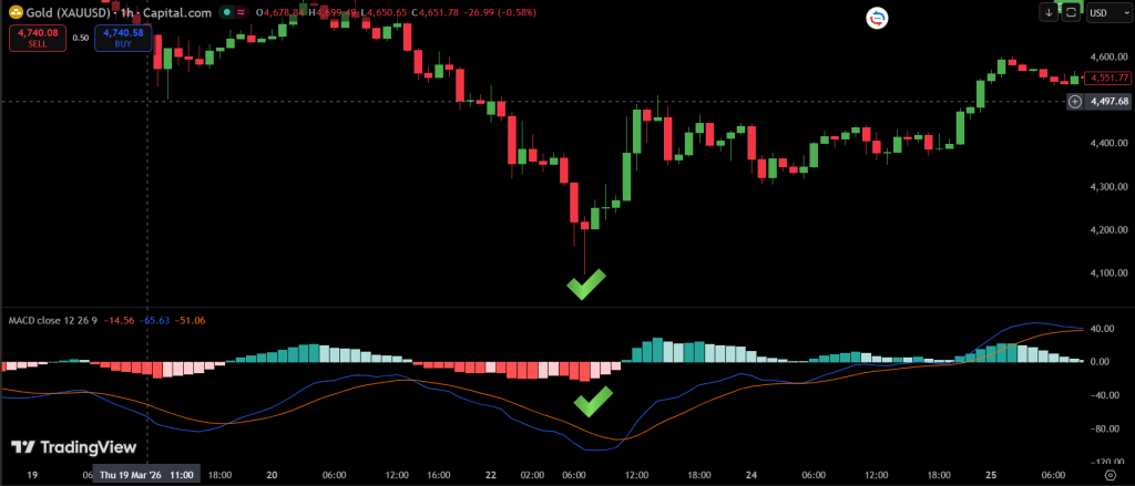 For example, if a hammer forms after a downtrend and the MACD histogram starts rising, it suggests that bearish momentum is fading. This increases the probability of a bullish move.